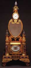 After 1825, clock-makers produced pieces which reflected the romantic period some with lovers, naked ladies or others looking like mini-cathedrals as well as mysterious clocks with concealed movements. Most of them relied on the co-operation of case makers, enamellists, founders and chiselling specialists.