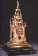 Table clocks were nevertheless seldom made in England during the second half of the 16th Century but a few interesting pieces were produced under the influence of French Protestants who had fled religious persecutions to seek refuge in London after 1572.